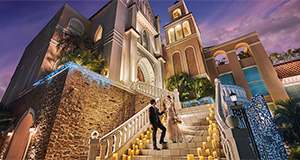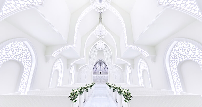 記憶に残る、清らかな誓いの舞台輝くバージンロードに導かれ、しあわせに満ちあふれた感動のセレモニーが叶います。天窓から差し込む光が天使の羽根のように降りそそぎ、おふたりを優しく包み込みます。